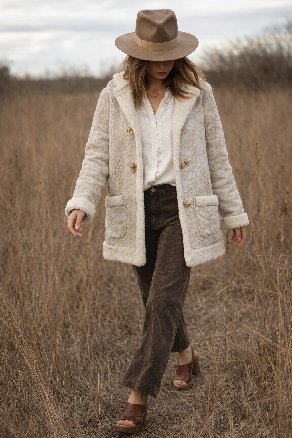 Vintage Shearling Sheepskin Coat – Rustic Cream