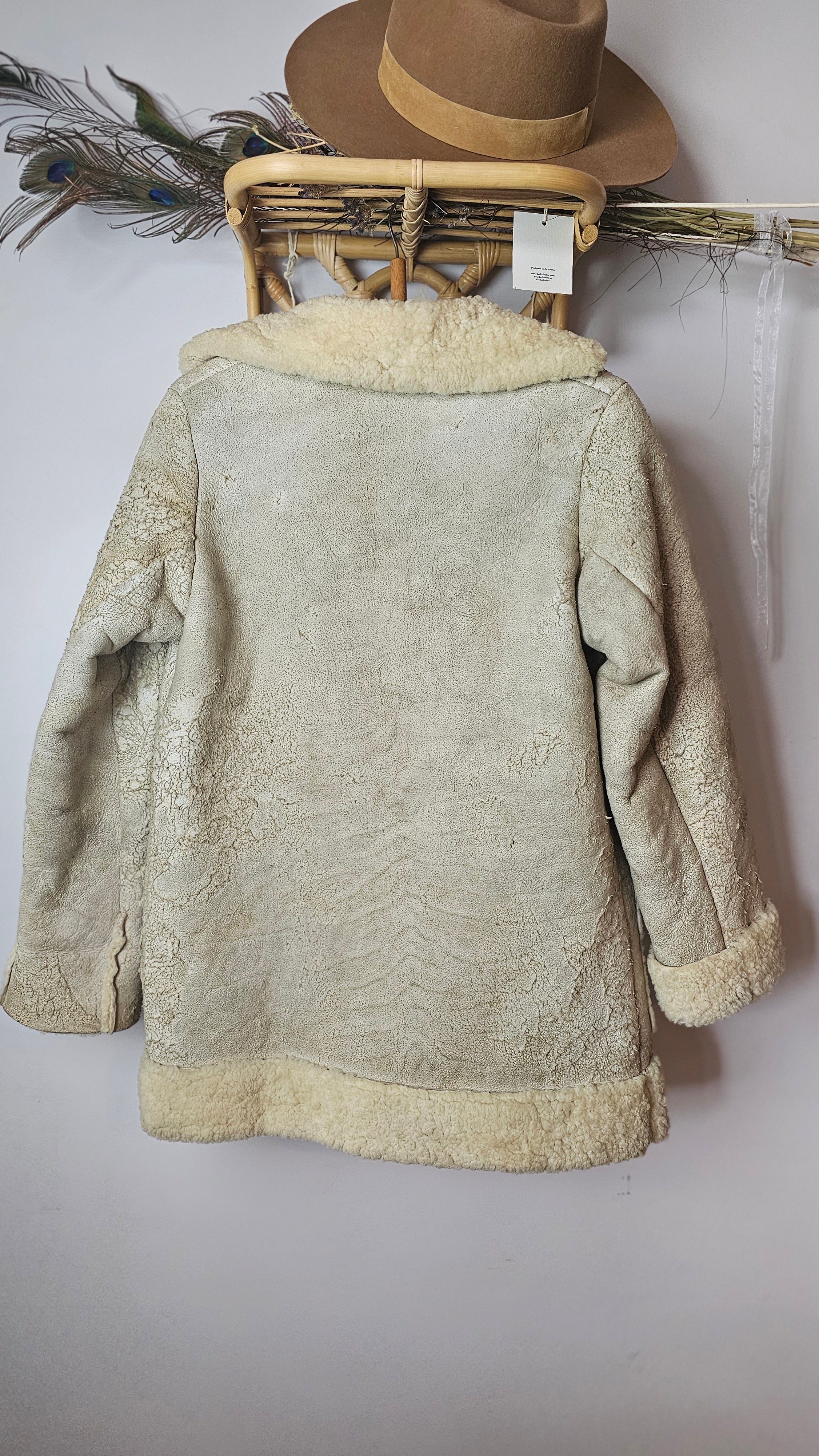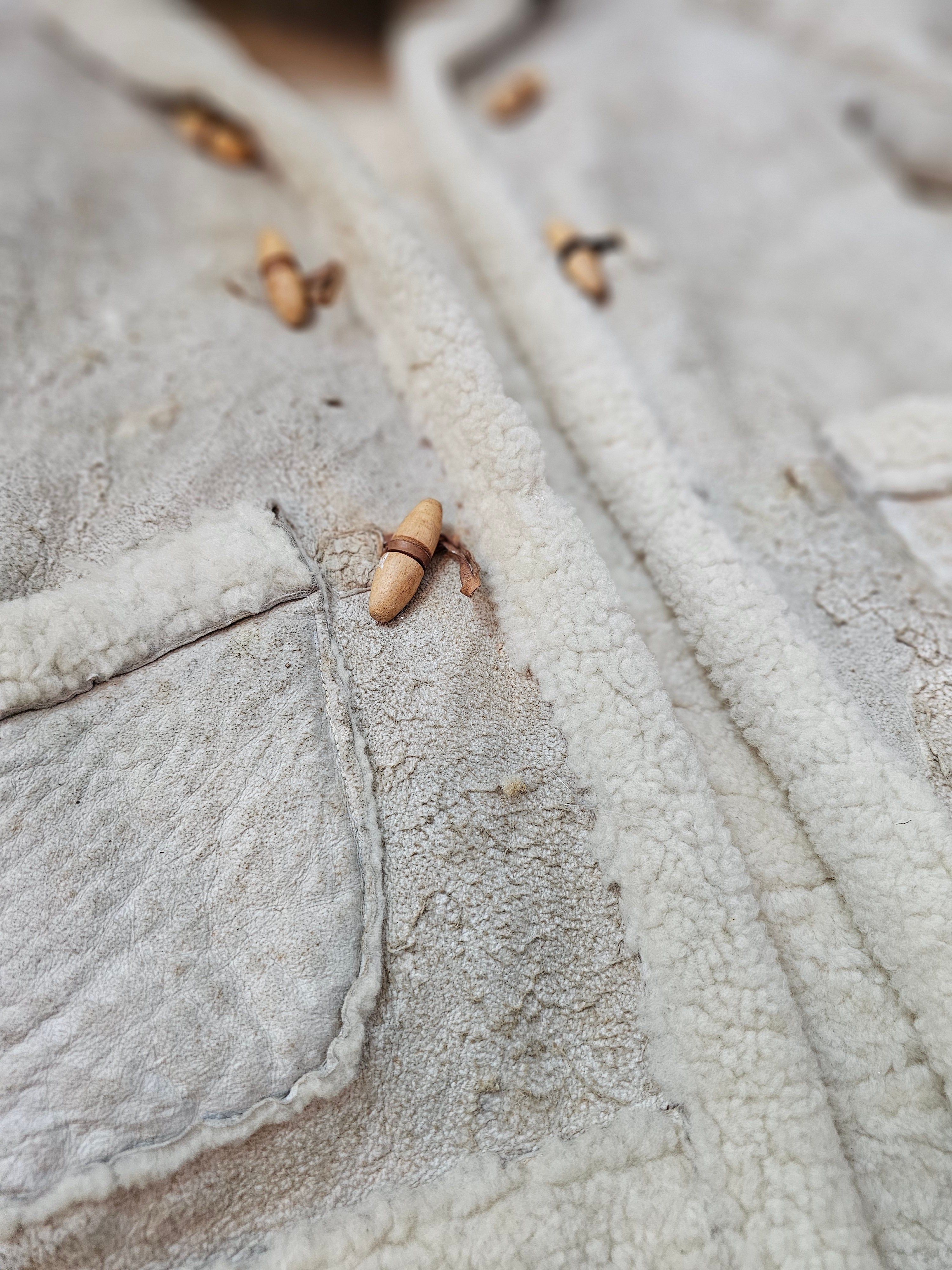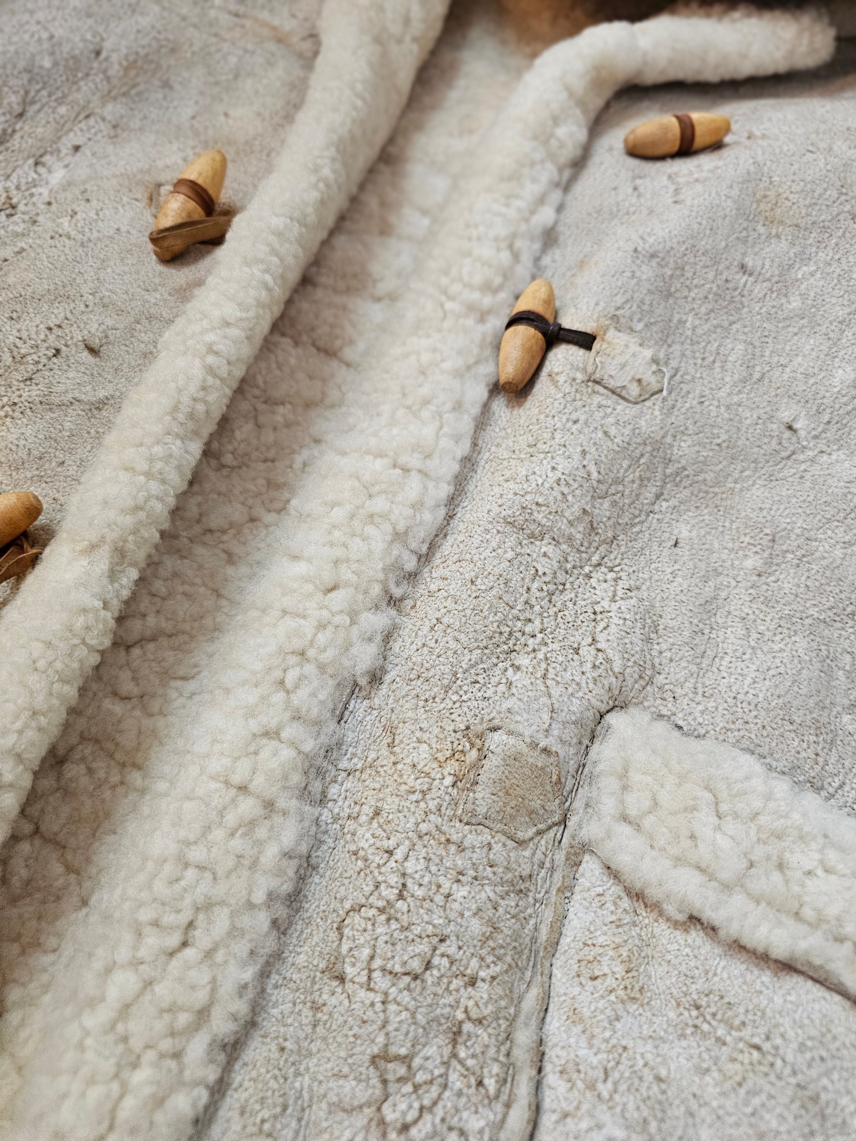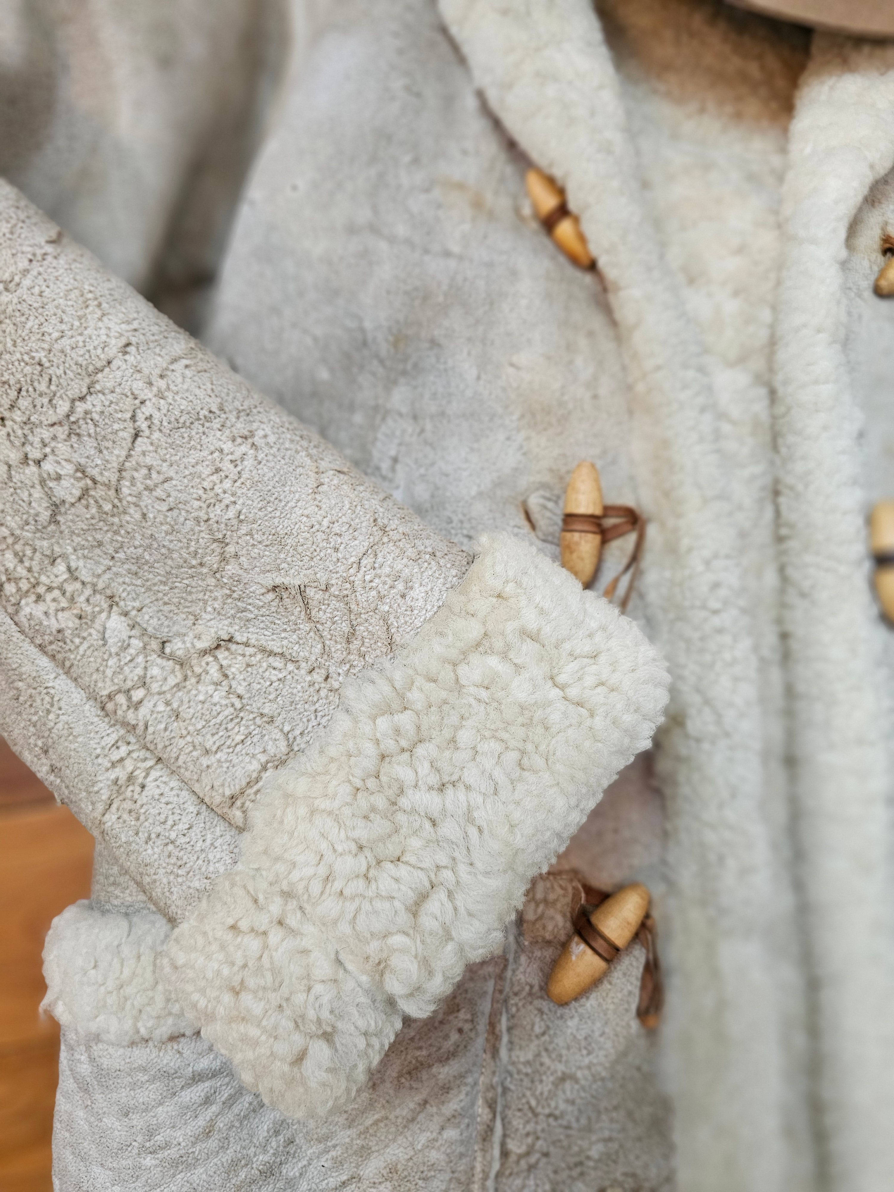 Vintage Shearling Sheepskin Coat – Rustic Cream 8/10