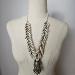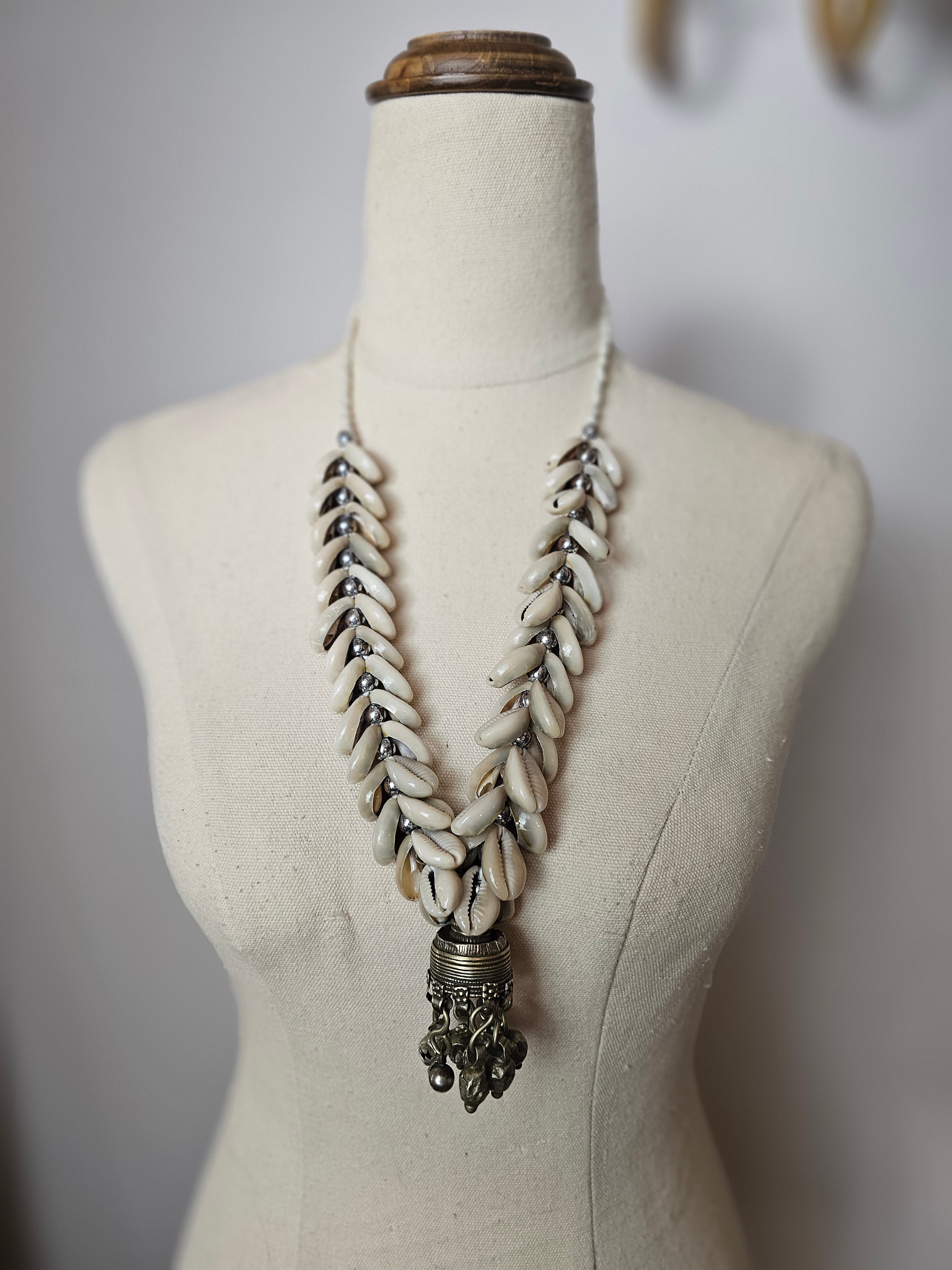 Layered with natural shell elements and finished with a detailed metal drop pendant, it brings texture, movement, and that effortless boho energy to any look. Slightly imperfect in the best way, adding to its authentic vintage character.