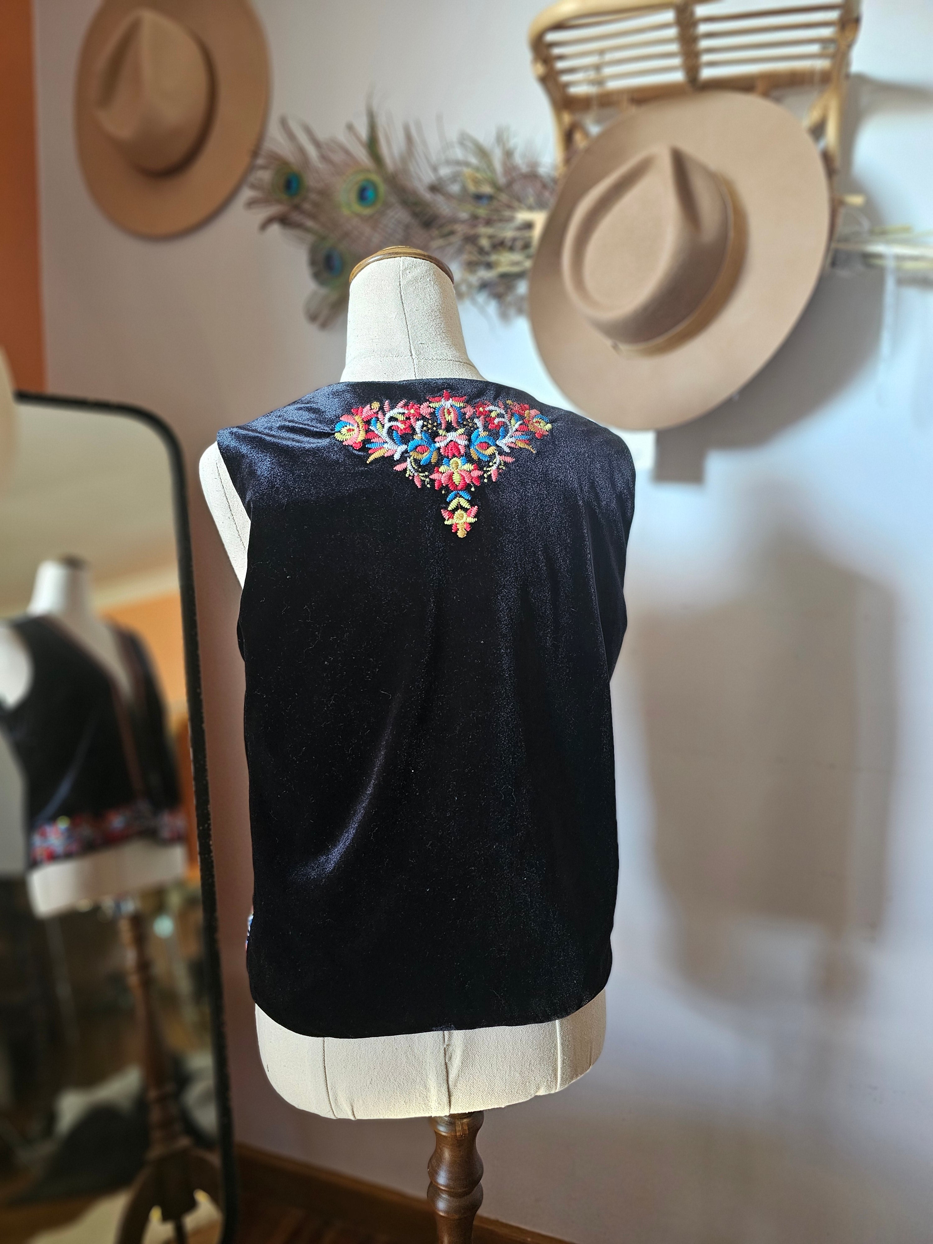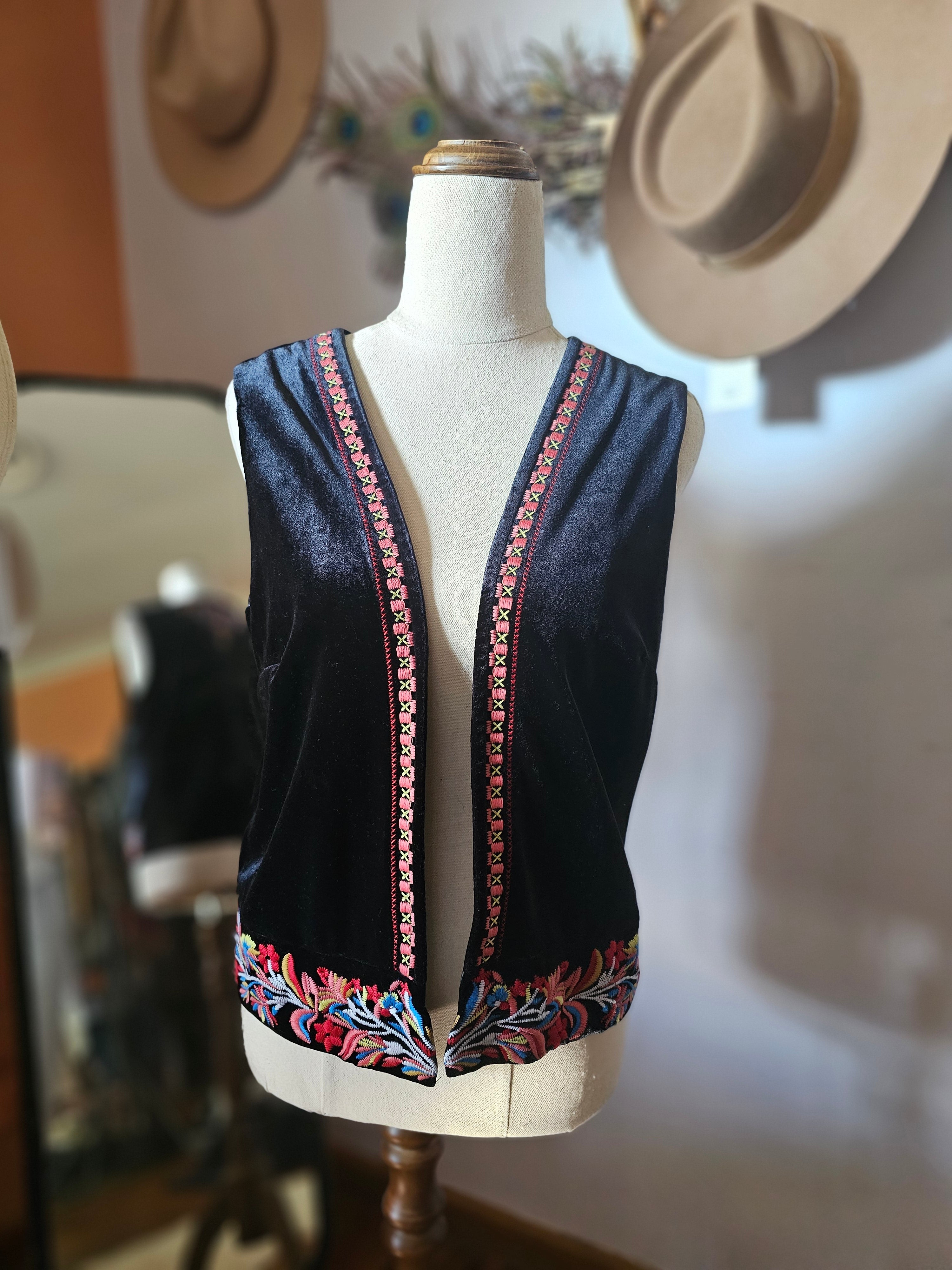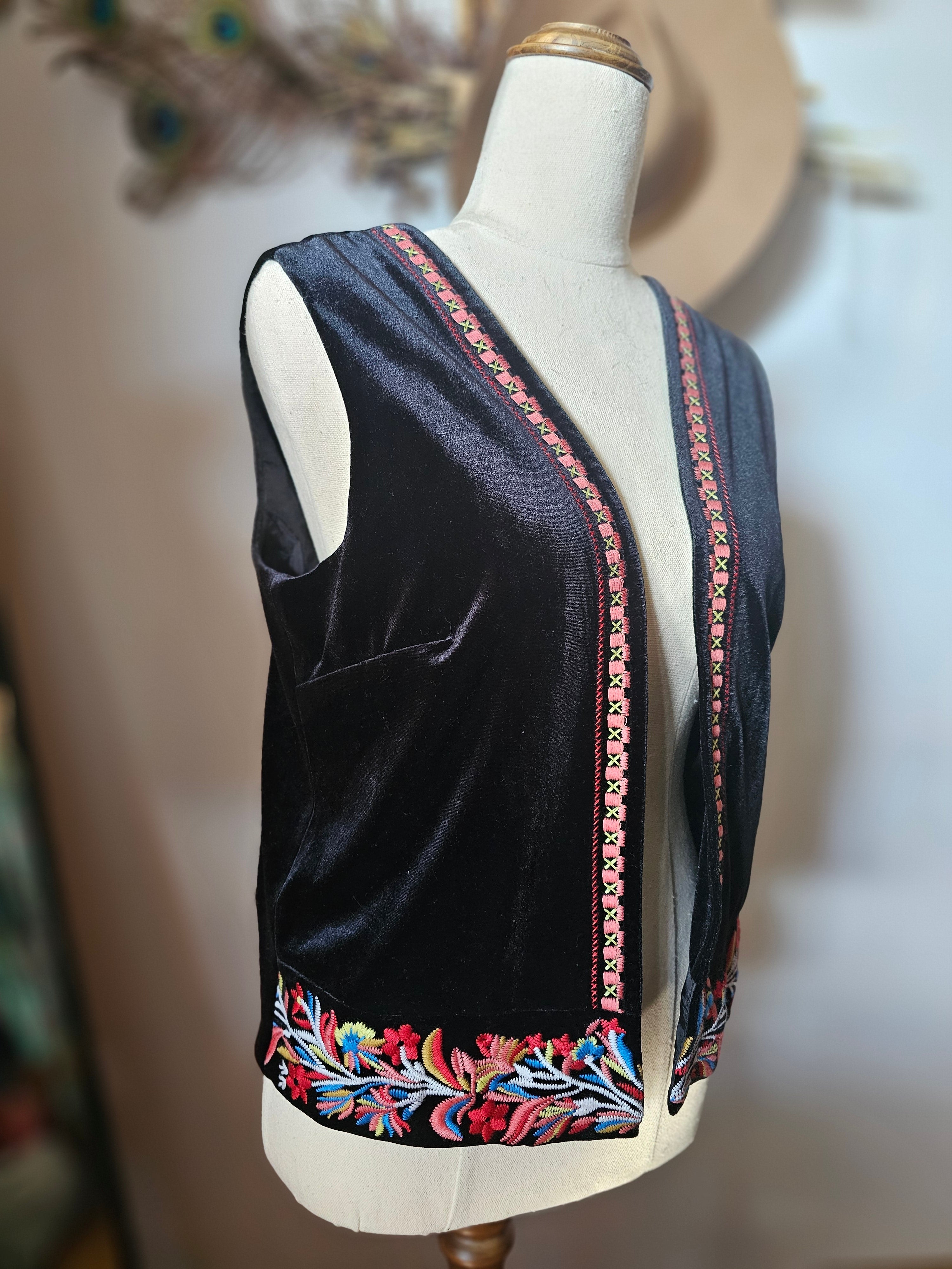 Vintage Embroidered Velvet Vest (Fits AU 8–10)