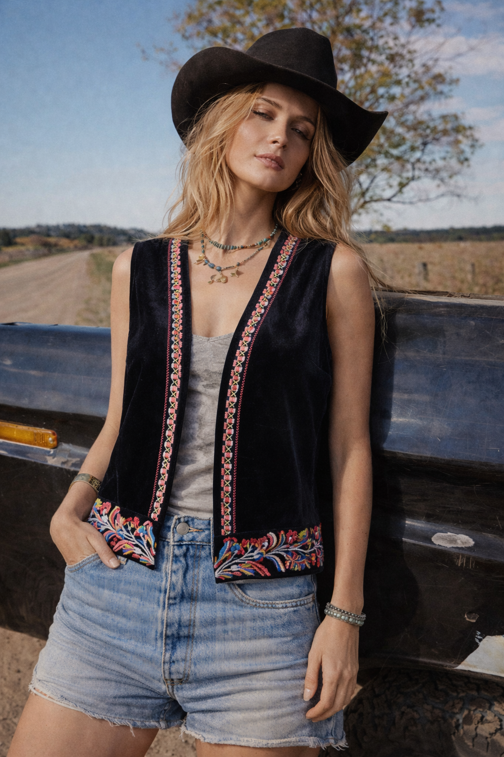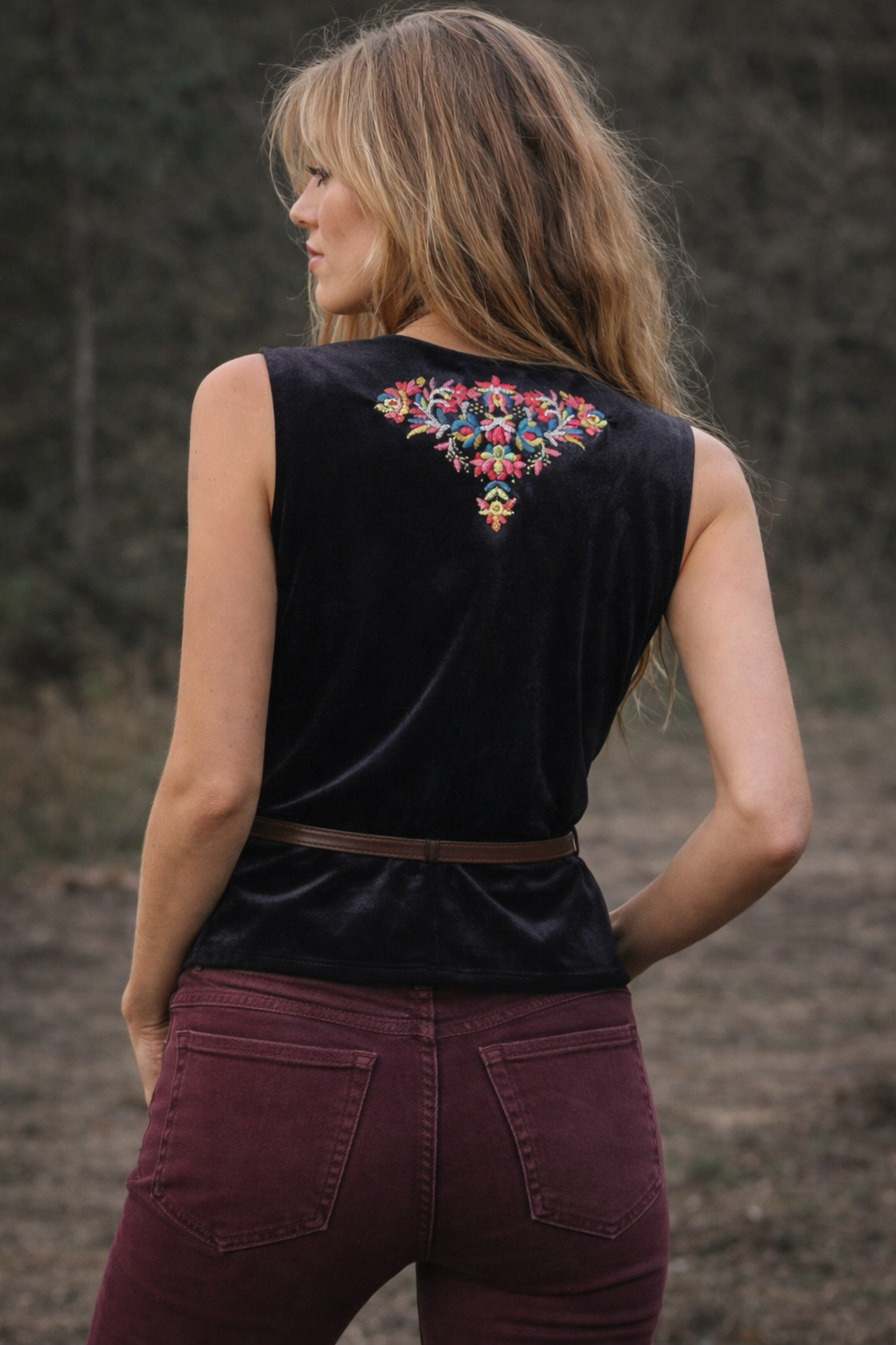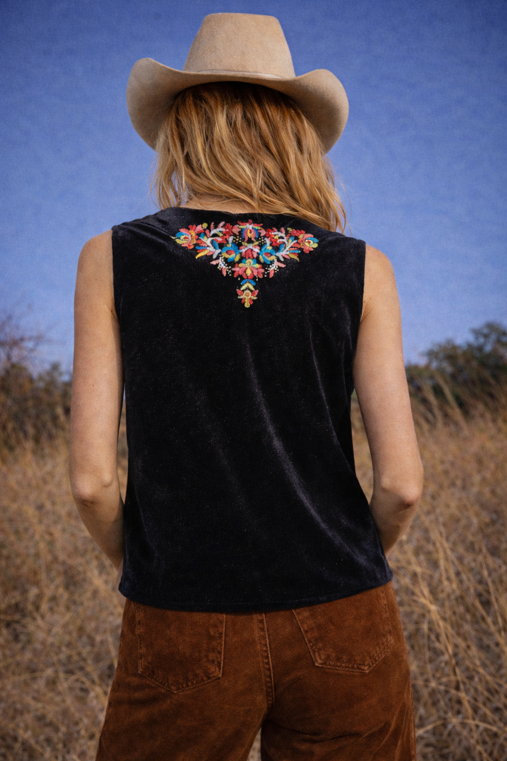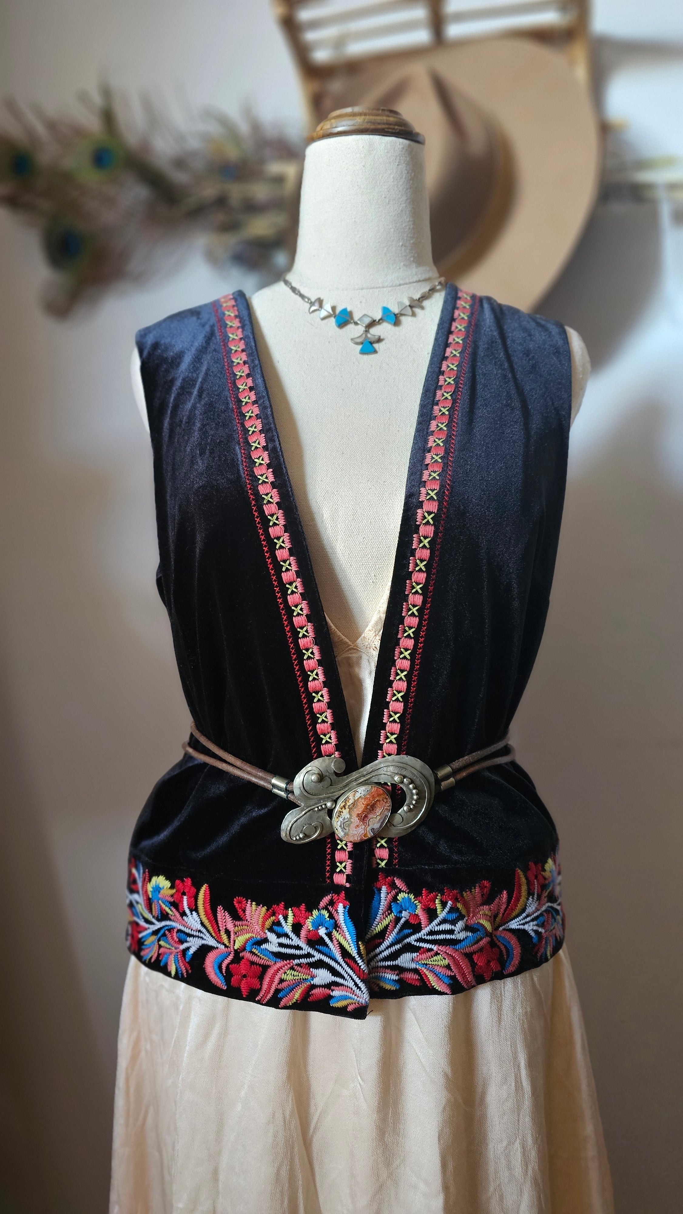 Vintage Embroidered Velvet Vest (Fits AU 8–10)