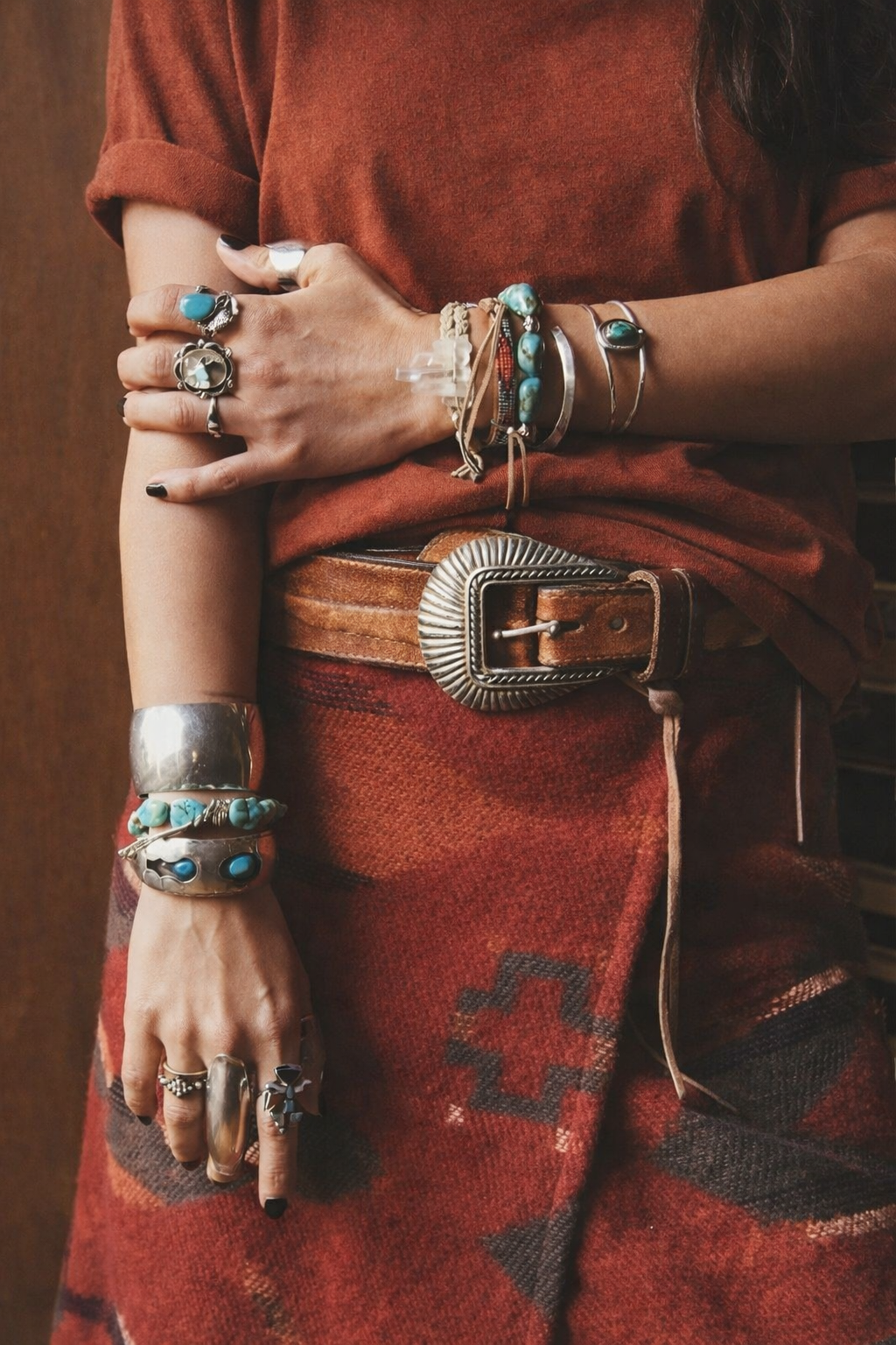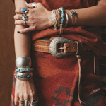 • Conchos show tarnishing and silver wear from age — adds to that authentic vintage look