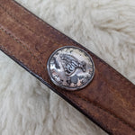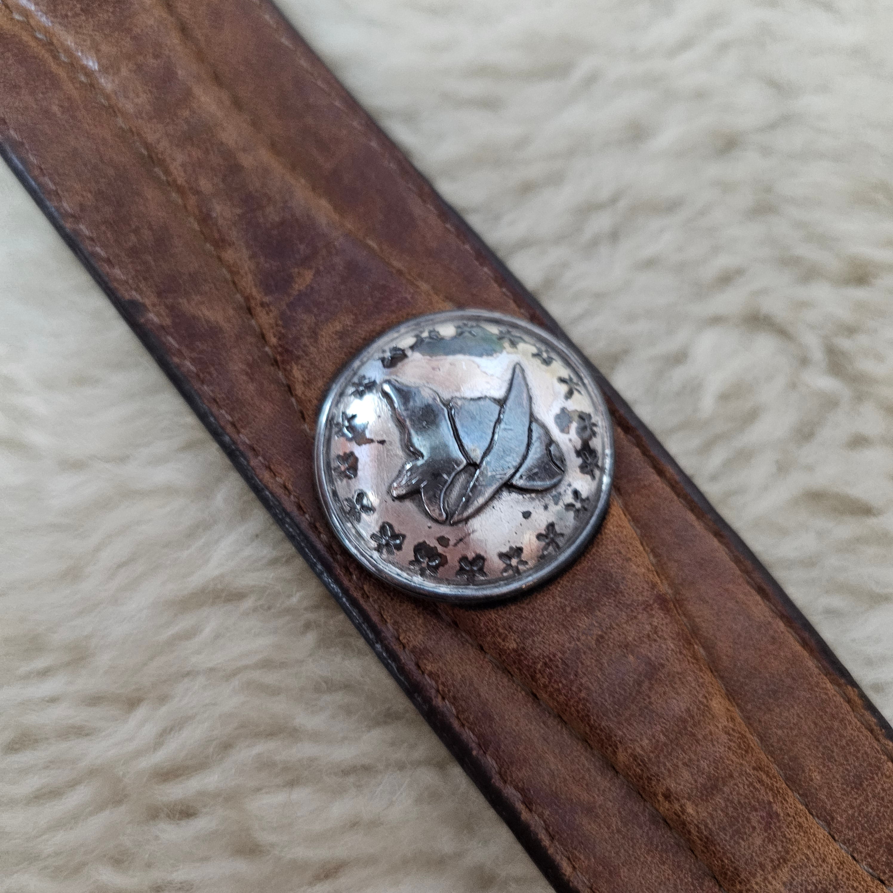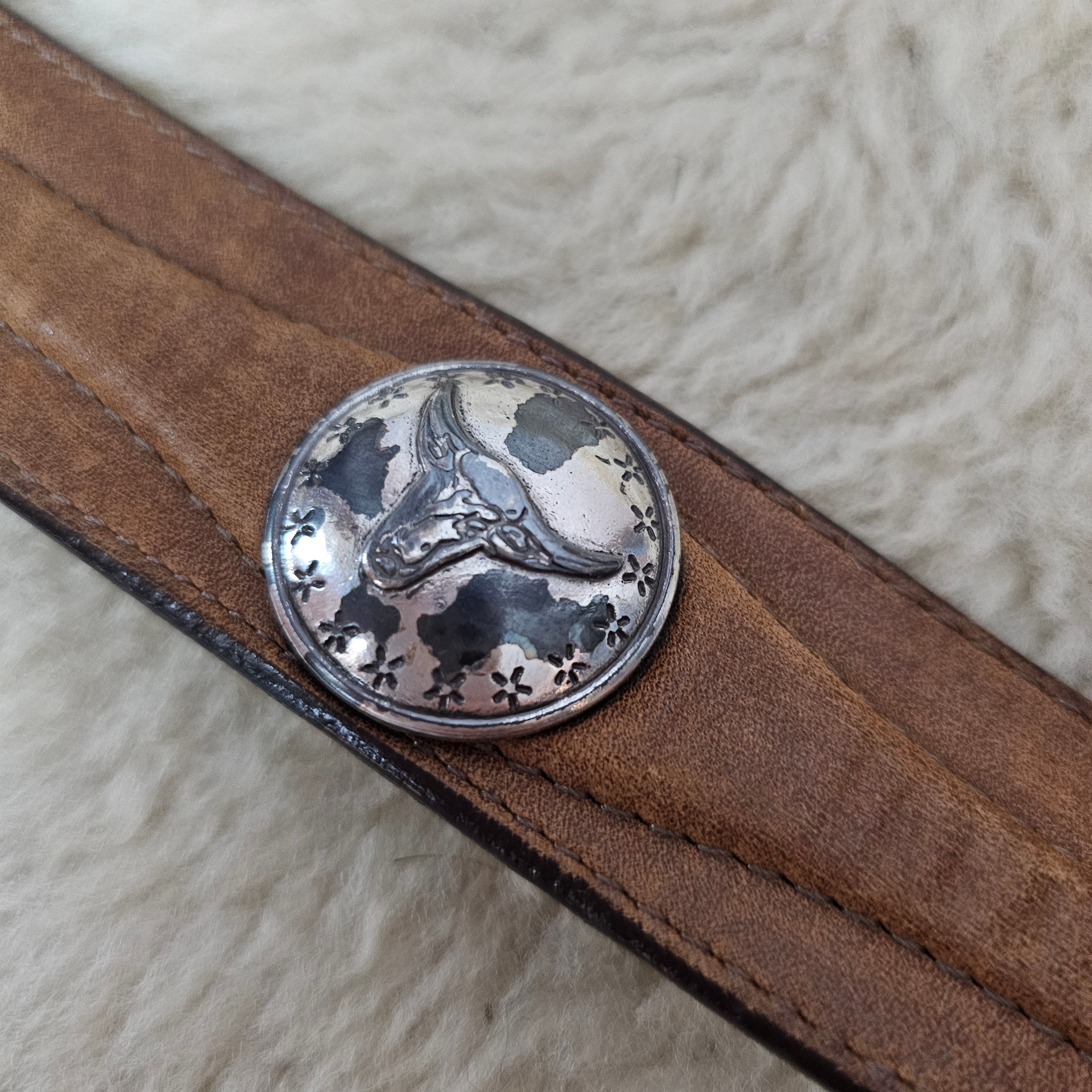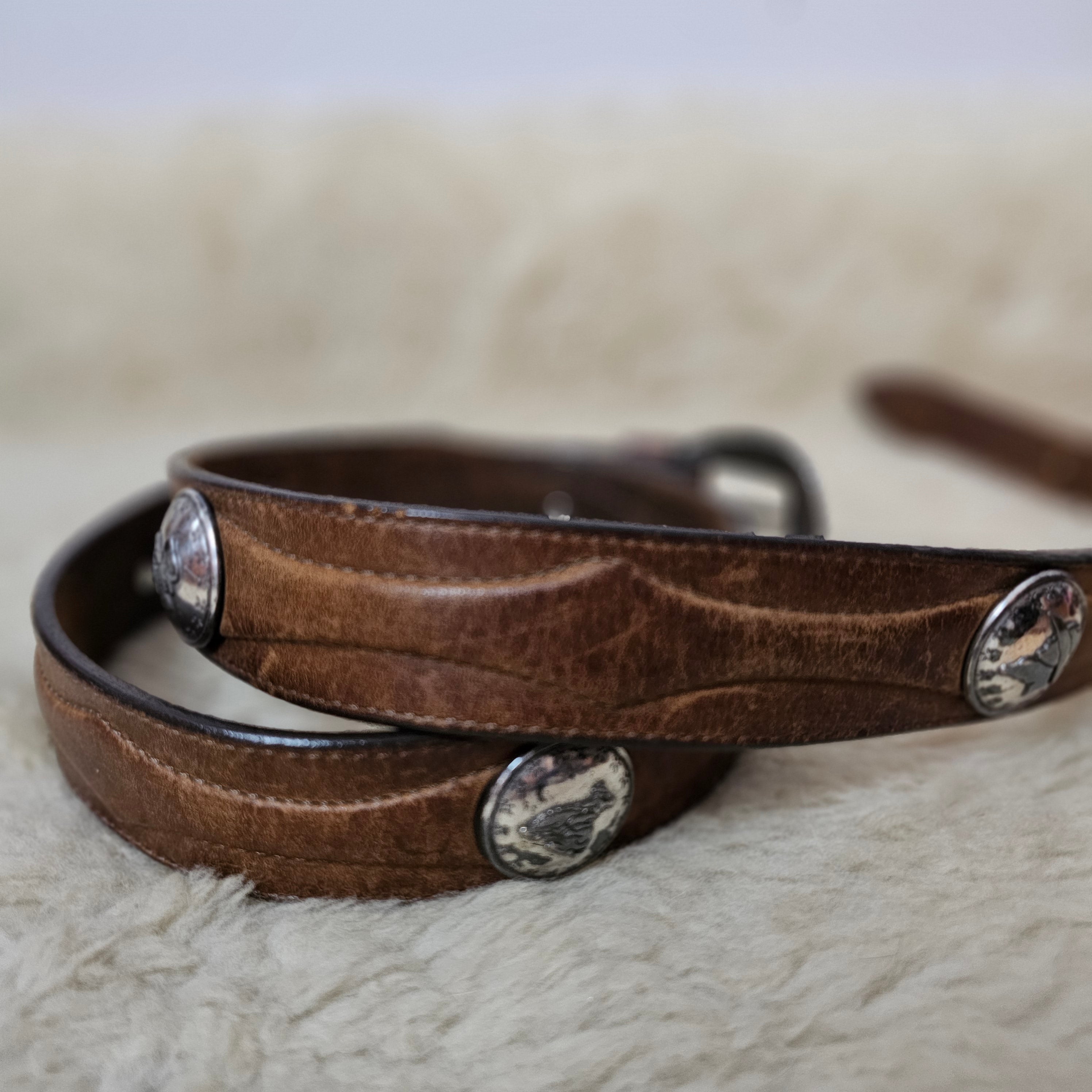 A proper vintage piece with real history — rich brown leather, solid feel, and those classic Western conchos that give it that worn-in, lived-in edge. Nothing polished or perfect here… just full character.